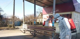 В Мелитополе массово дезинфицируют остановки (ФОТО-ВИДЕО)
