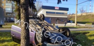 В Запорожье в результате ДТП перевернулась иномарка (ФОТО)
