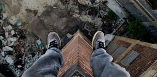 Сидели на краю и болтали ногами: на крыше запорожской высотки развлекалась...