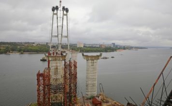 В Запорожье на вантовом мосту завершается монтаж стальных канатов
