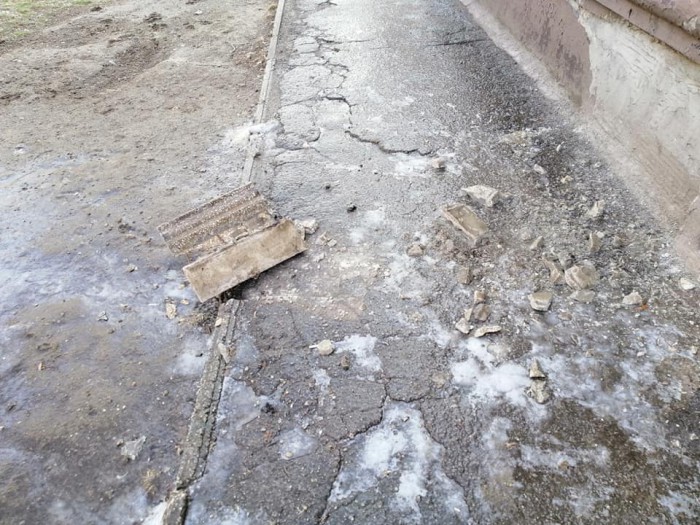 Ночью 30 января в центре города случилось ЧП. С дома отпал кусок плиты.