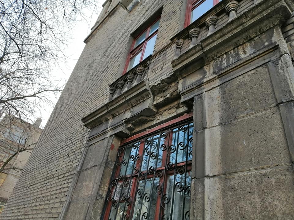 С фасада дома в центре Запорожья обрушился кусок бетонного декоративного элемента (ФОТО)