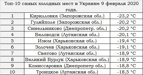 Так, самой холодной областью Украины стала Запорожская: в Кирилловке температура опустилась до -23,2°С, а в Гуляйполе до -20,2°С. Также в топ самых холодных точек вошли населенные пункты Днепропетровской, Луганской и Харьковской областей.