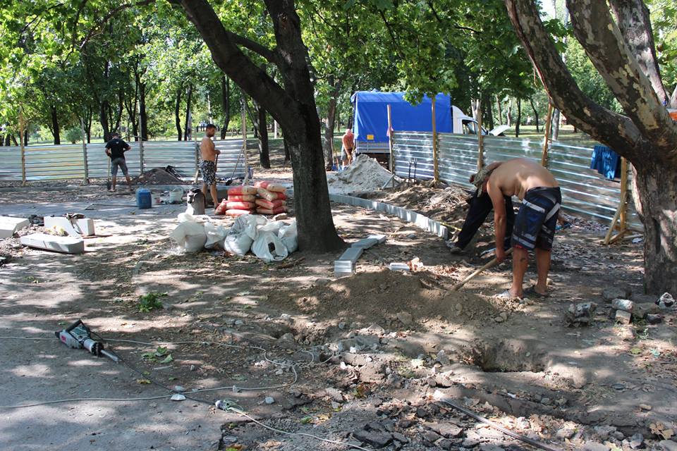 Кроме восстановление старого объекта рабочие заняты и созданием нового. Так, параллельно с реставрацией туалета строители начали работы над оборудованием нового культурного «комплекса». В скором времени в парке появится так называемая Аллея выпускников. На ней обещают разместить фонари с кованными элементами и лавочки, стилизованные под музыкальные инструменты. К слову, её обещают закончить так же к 7 октября.