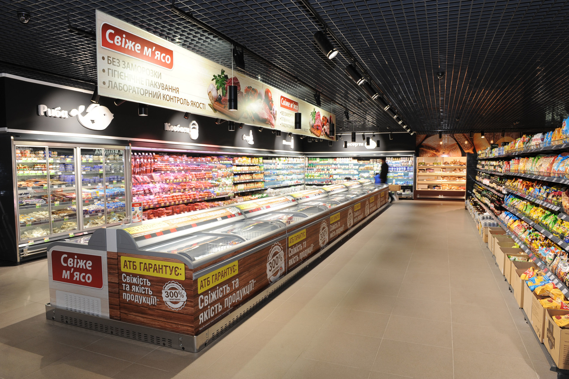 В новых магазинах АТБ доминирующем будет именно чёрный цвет. Изменения ждет и система освещения торговых рядов и материалы, которые будут использоваться для отделки и декора стендов.
