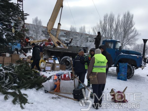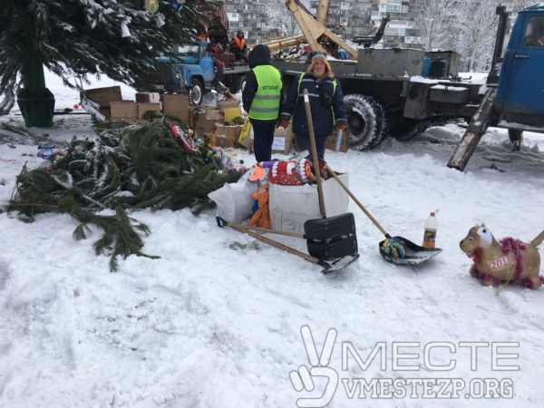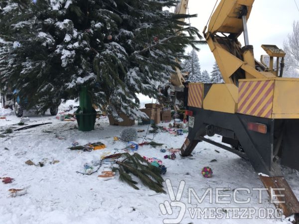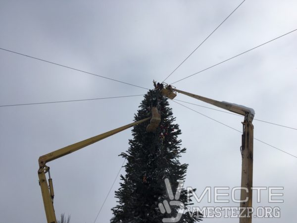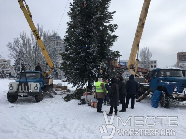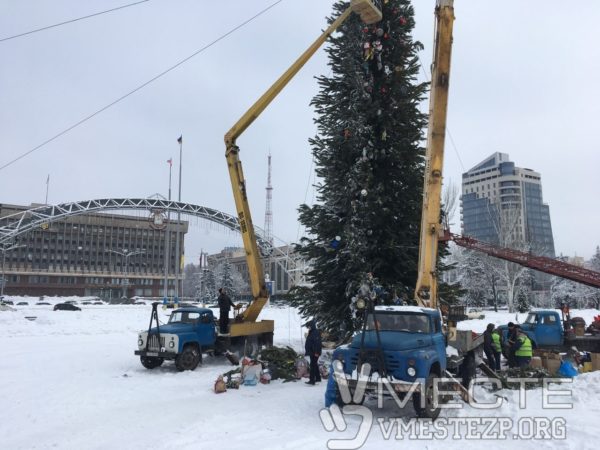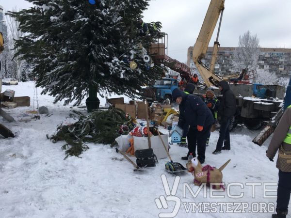 Сегодня, 25 января, запорожские коммунальщики с самого утра приступили к демонтажу главной елку области, установленной на площади Фестивальной.