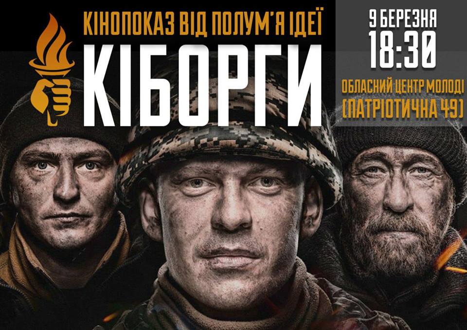 Тем, кто ещё не посмотрел на большом экране знаменитый фильм о героических защитниках Донецкого аэропорта «Киборги», такая возможность предоставится завтра, 9 марта. Такую возможность для запорожцев организовал культурно-просветительский клуб «Полум’я Ідеї». Кинопоказ состоится в 18.30 в Областном центре молодёжи (ул. Патриотическая, 49). Организаторы даже обещают угостить всех зрителей чаем с печеньем, однако предупреждают, что чашки надо принести с собой.