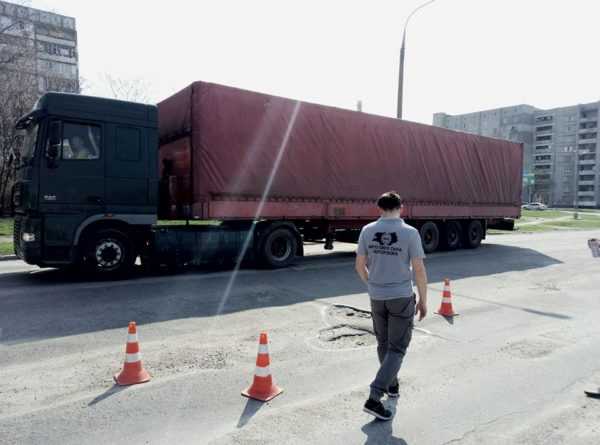 Сегодня, 13 апреля, активисты общественной организации «Автоевросила» продолжают совместно с патрульными полицейскими фиксировать и документально оформлять ямы на дорогах, расположенных в Хортицком районе города.