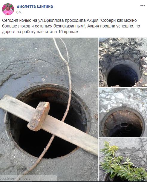 По словам женщины, в Шевченковском районе Запорожья, по улице Брюллова, неизвестные злоумышленники, под покровом ночи, похитили более 10 канализационных люков.