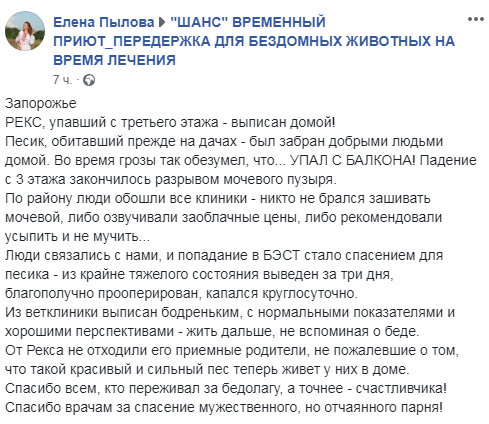 Как оказалось, пес по кличке Рек до этого обитал в дачном кооперативе, но затем благодаря стараниям волонтеров попал в “приемную” семью в Запорожье.