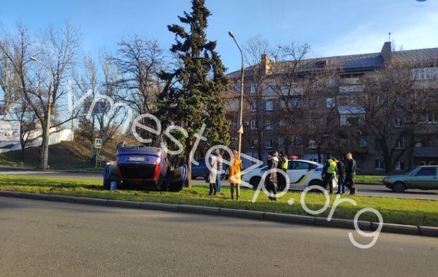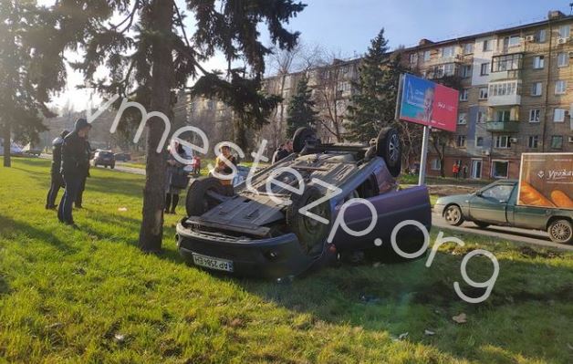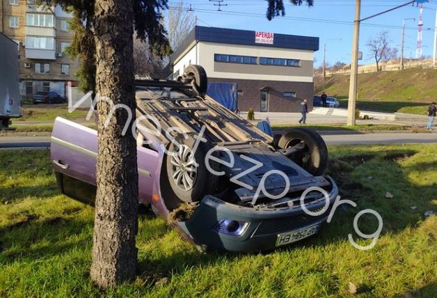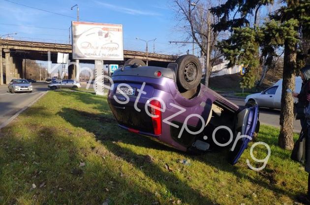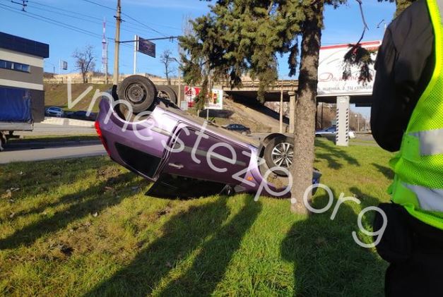 В Запорожье в результате ДТП перевернулась иномарка (ФОТО)