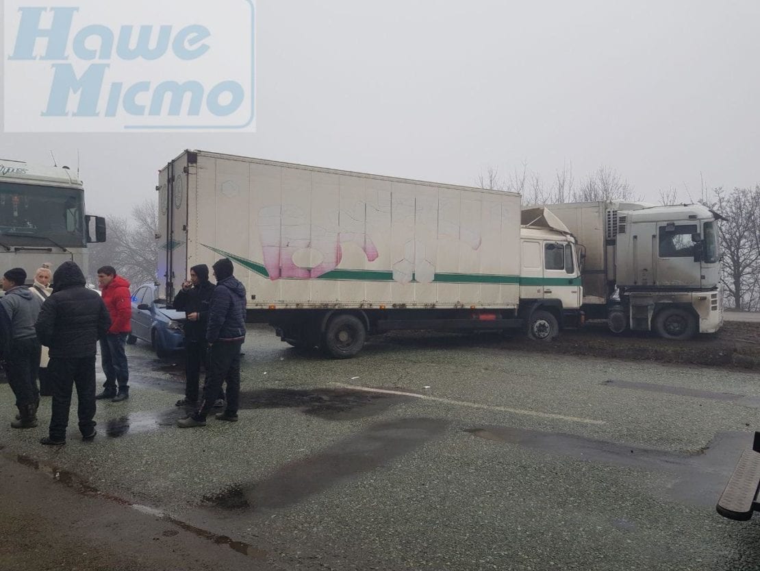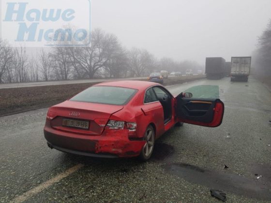 Массовое ДТП произошло сегодня, 29 января, на Криворожской трассе, неподалеку от города Днепр. Здесь дорогу не поделили пассажирский автобус «Киев-Запорожье», два грузовых автомобиля и три легковушки: Chevrolet Lacetti, Chevrolet Aveo и Audi. От удара одна из легковушек слетела с проезжей части и оказалась в кювете. Из-за аварии на данном участке трассы образовалась большая пробка.
