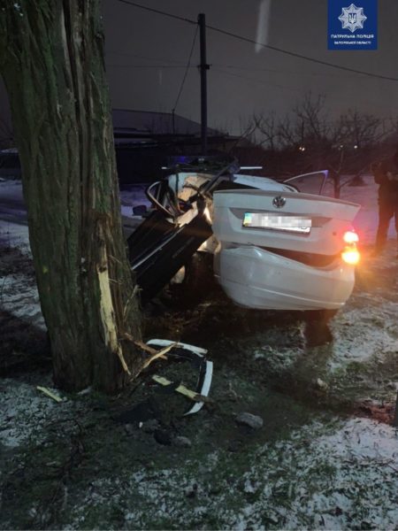 Серьезное ДТП произошло сегодня утром, 12 февраля, в Шевченковском районе Запорожья. На улице Военстрой 37-летний водитель легкового автомобиля Volkswagen Polo не справился с управлением, слетел с проезжей части и на полном ходу врезался в дерево.