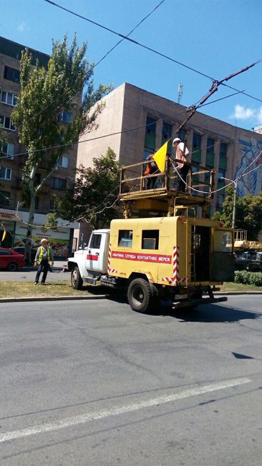 Как сообщили в пресс-службе патрульной полиции, днём на пр. Соборном снова оборвало линию электропередач. В данный момент на месте работает аварийная бригада, которая пытается устранить разрыв.