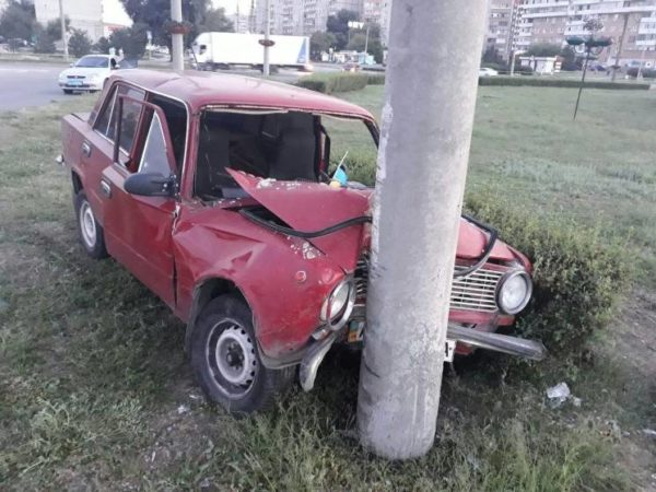 В Запорожье водитель ВАЗа вылетел с дороги и врезался в столб (ФОТО)