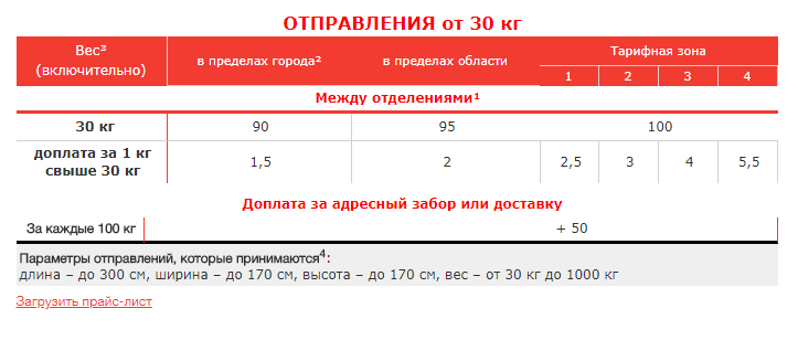 Теперь в категории «до 30 кг» появилась новая тарифная зона — «по области». Тут будет действовать более низкий тариф на пересылки. Для тех отправлений, вес которых составляет более 30 кг количество тарифных зон наоборот уменьшилось, однако в пределах одной области будет действовать сниженная цена «базовых» 30 кг. В категориях «Паллеты» и «Шины, диски» также пересмотрели и снизили количество тарифных зон. Подешевела и отправка паллет с поддоном до 500 кг и площадью до полуметра.